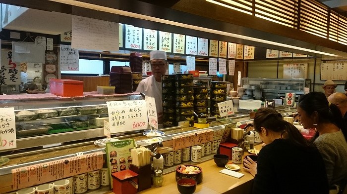 渋谷・道玄坂にある回転寿司のお店だが、平日の昼間は500円代で海鮮丼が食べられるとあって、外国人客も含めて客足が絶えない。値段は安いのに味はしっかりしており、人気があるのも頷ける。コスパの高い店である。