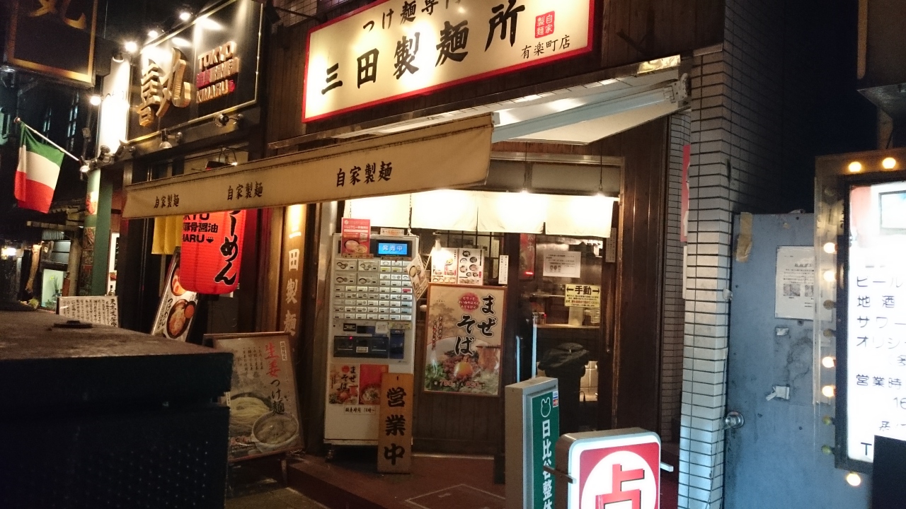 有楽町と新橋の間にあります。赤坂の三田製麺所は行ったことがありますが、有楽町店は始めて。店はカウンターのみ。10席前後の小さな店舗。入り口の券売機で食券を購入します。麺は小200gから大400gまで同じ値段。つけ麺屋によくあるスタイルです。注文は普通のつけ麺大。濃厚な豚骨と魚介ベースのスープで極太の麺を食します。お腹すいていたので大でもペロリといけました。満足。