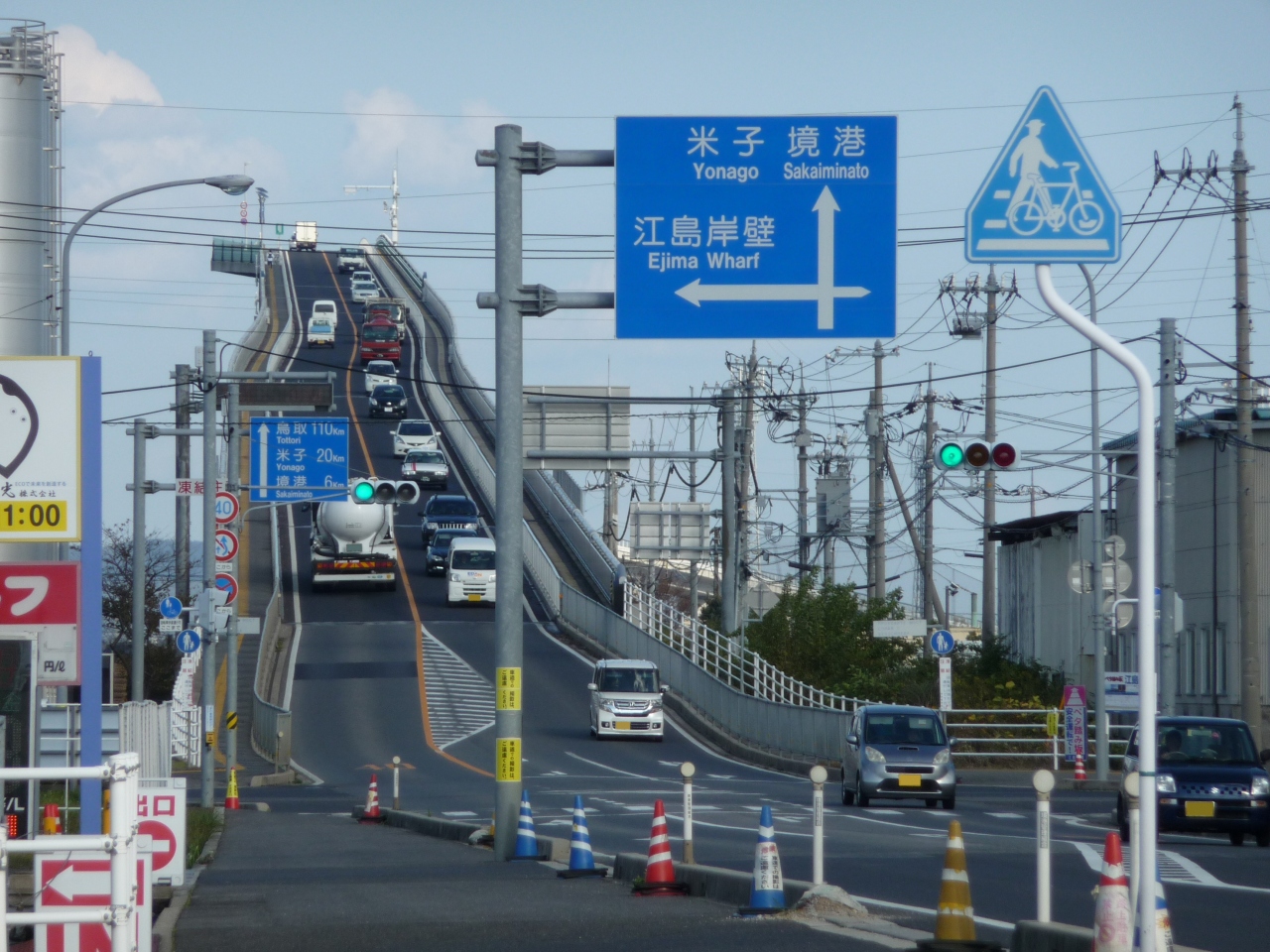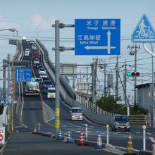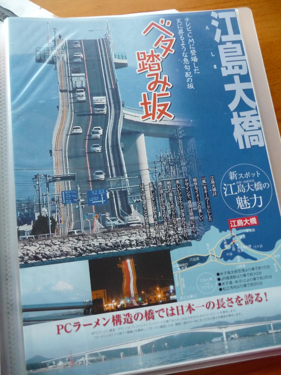 昔のテレビCMで見たべた踏み坂と呼ばれる坂は、江島大橋の江島側になります。