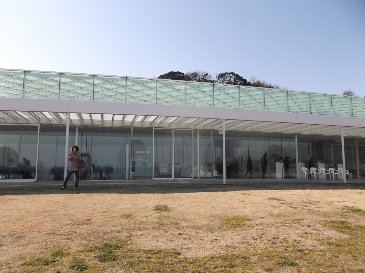 展示作品はあまりぱっとしないが、白亜の建物は未だ新築のようにきれいだし、何より浦賀水道に面したロケーションは最高で、前庭の芝生広場越しに見る青い海はいつ見ても素晴らしい。
