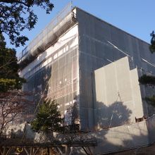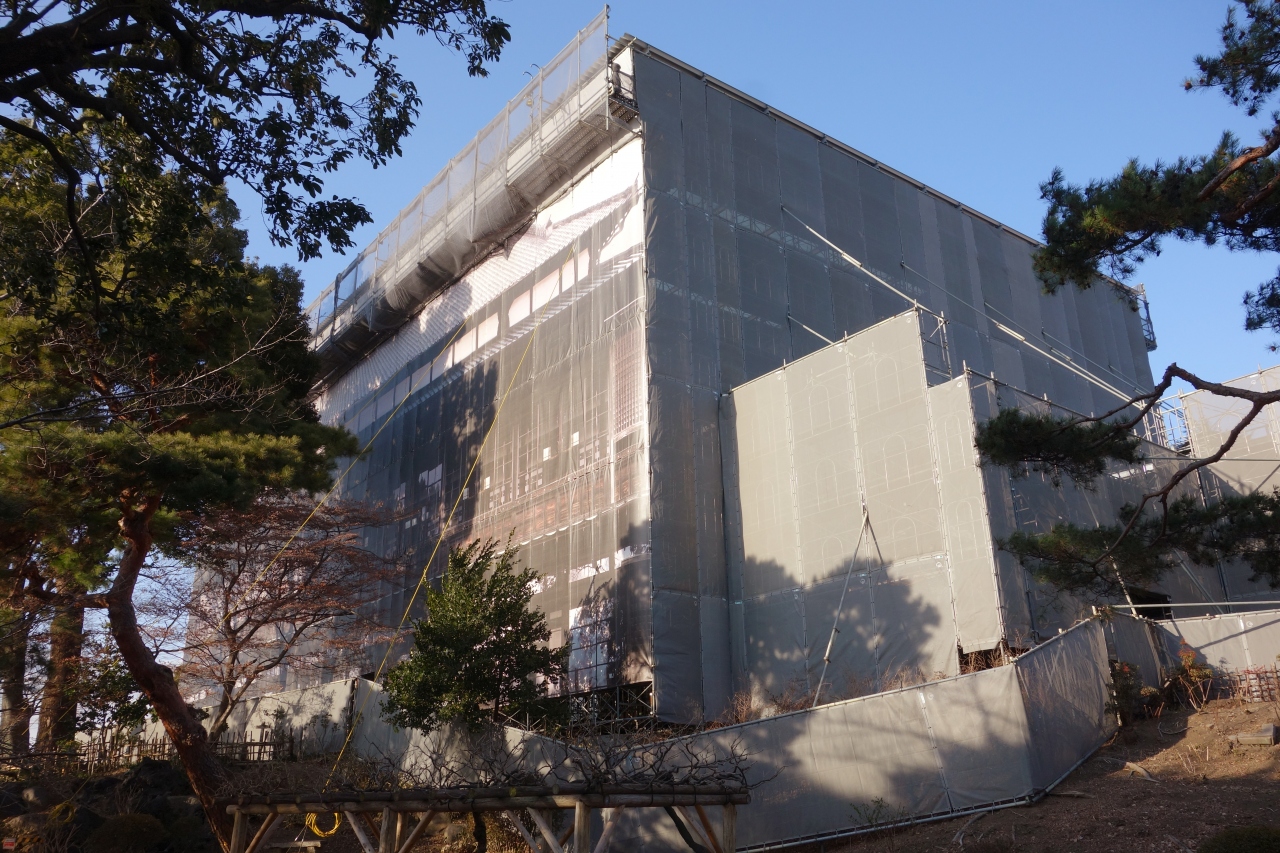 前橋公園にある大型の木造建築です。迎賓館として建てられたものだそうで、これが前橋最大の見ものかなあと期待して訪れたのですが……。なんと絶賛修復中! 全面がシートで覆われてまったく見えません。シートには臨江閣の姿が印刷されていますが、それを見たところで仕方ないし……。
