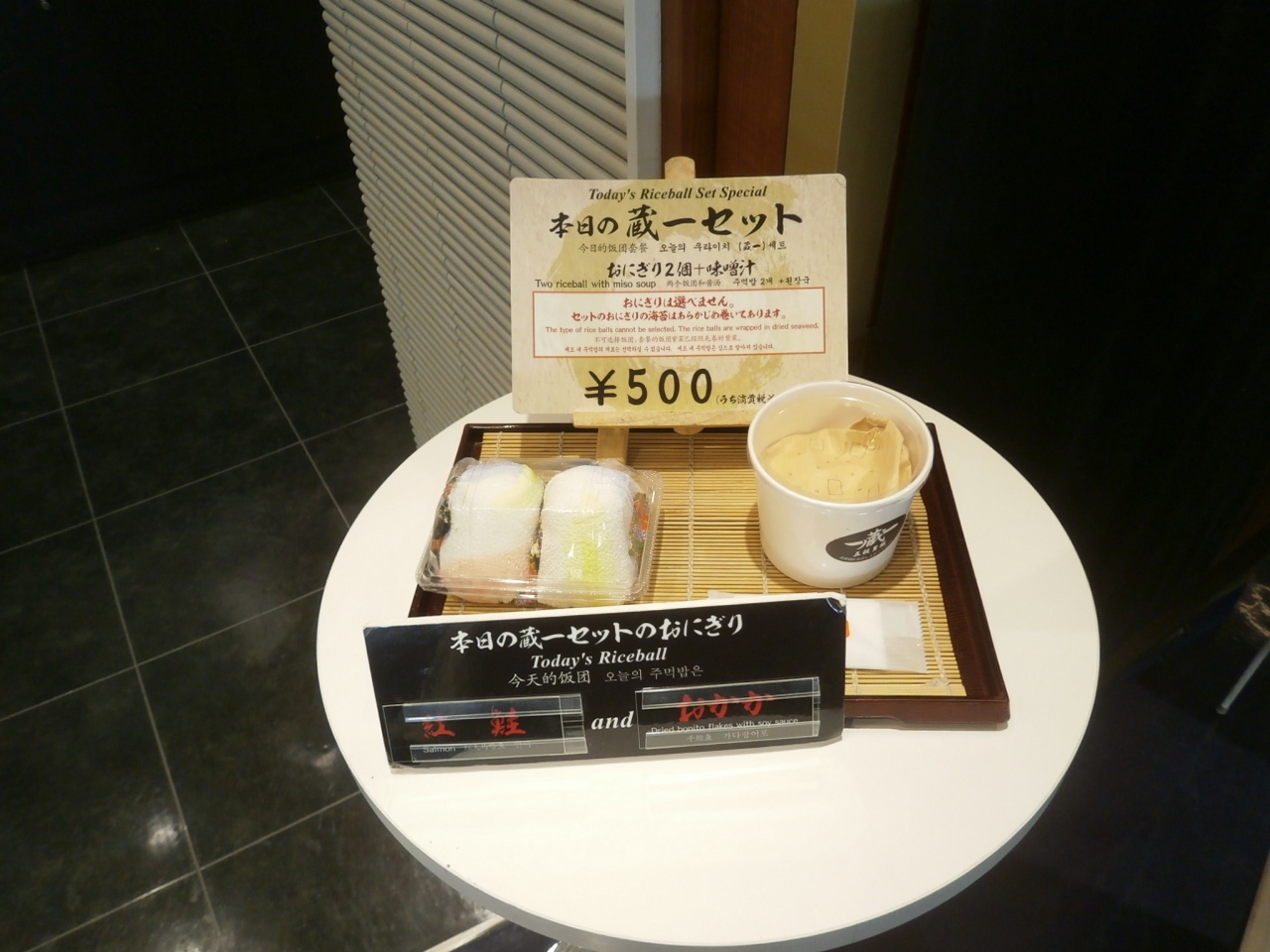 - おかかと鮭のおにぎりとお味噌汁が付いて500円!