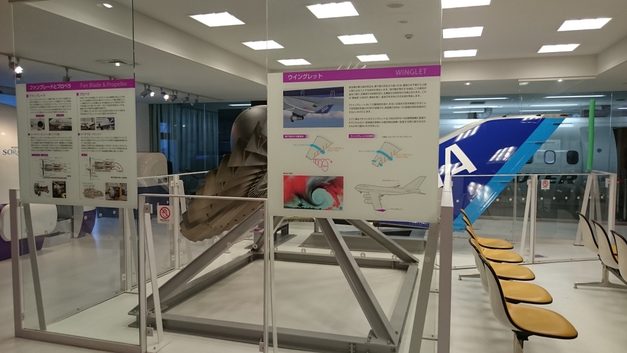 空港の展望デッキに出ると、「航空展示室 SORA STAGE」と書かれた入口がありました。