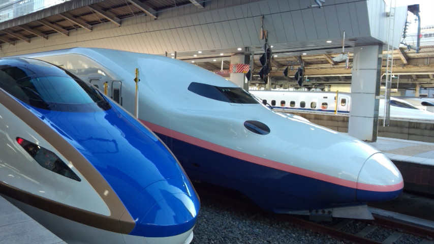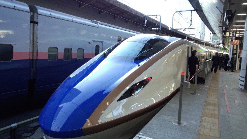 富山出張で初めて北陸新幹線を利用、往路はかがやき505号、復路はかがやき516号に乗車しました。車内はとても落ち着いた雰囲気、普通車でもシートピッチが十分確保されています。広いテーブルとドリンクホルダーはとても便利です。シートの座り心地もよく、移動式のフットレストがあるのも大変ありがたいです。最高速度はE5/H5系にかないませんが、いろいろと進化がみられます。