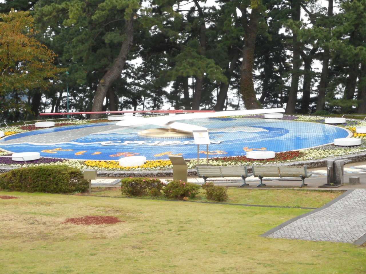 土肥温泉の観光の際に訪問しました。松原公園の入り口付近にあって、ギネスブックに収載されている「世界一の花時計」という案内がありました。上からの様子が見やすいように、展望スペースもあってよかったです。冬でしたが、花もきれいに植わっていました。