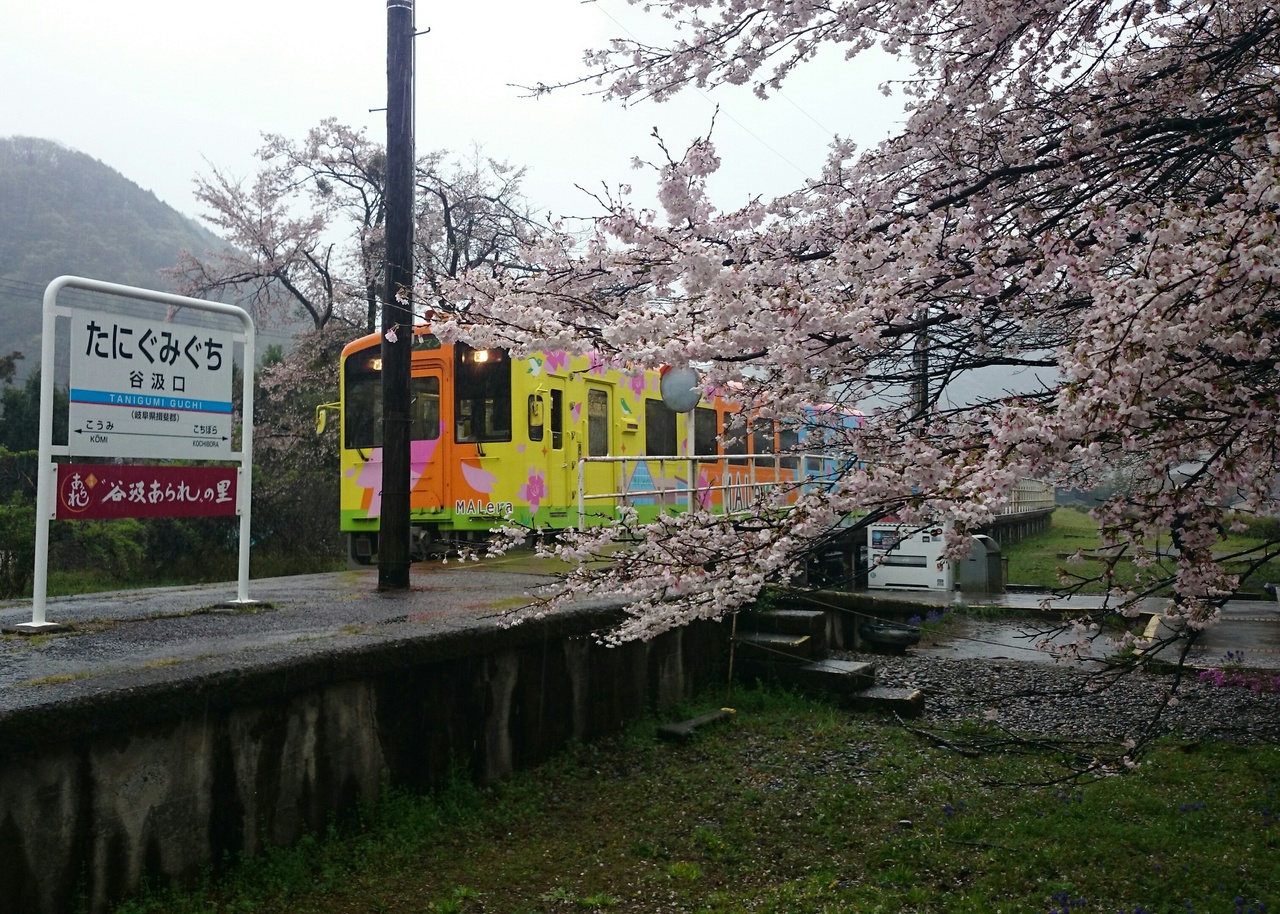 終点の樽見駅から徒歩15分ほとで淡墨桜があります。途中の谷汲口駅も桜が綺麗でした。