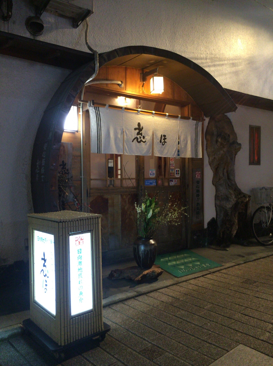 宮崎駅から歩いて15分ぐらい橘通りの西側、一大飲食店街の路地にある店、志ほ