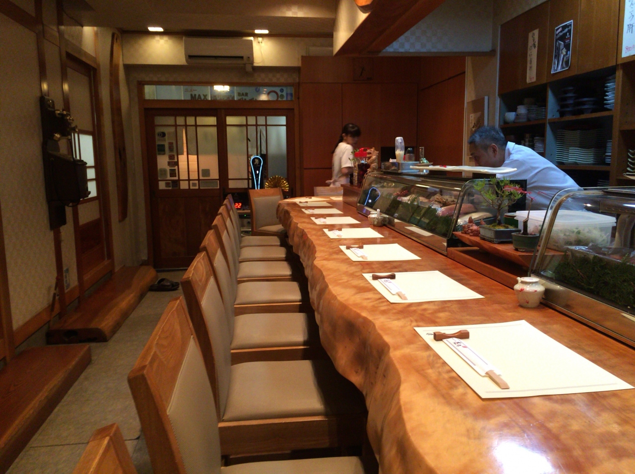 ピカピカに磨き上げられた、ゆったりとしたカウンター席