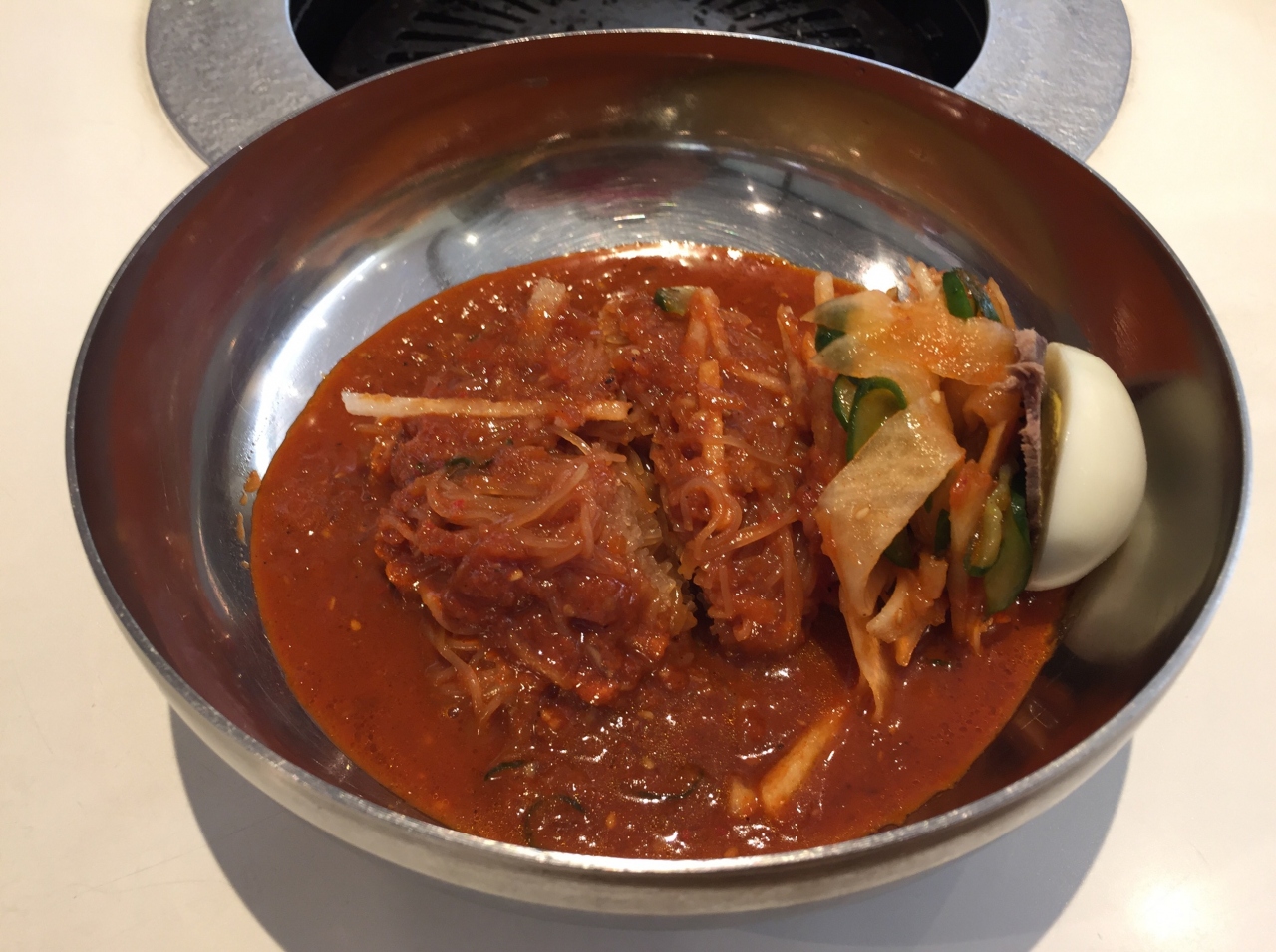 ここでは、冷麺だけでなく焼肉も少し食べた!という客のニーズを反映した焼肉と麺のセットがあります!