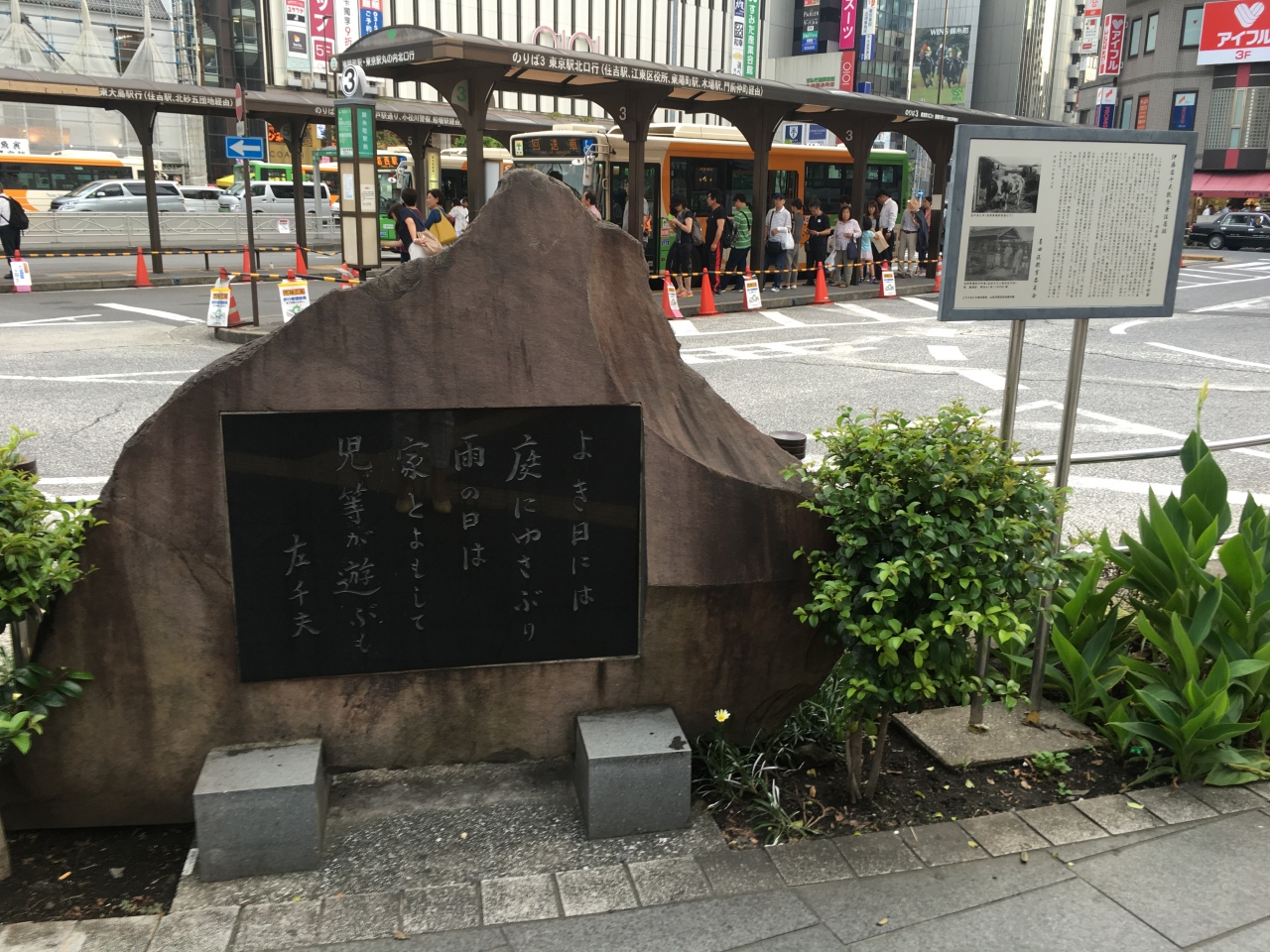 錦糸町駅南口ロータリーに伊藤佐千夫の歌碑がありました。ちょうど半蔵門線出口の横になります。野菊の墓で有名な伊藤佐千夫は、明治22年に現在の千葉県山武市から上京し、この辺りに住居を構え搾乳業を営んでいたそうです。