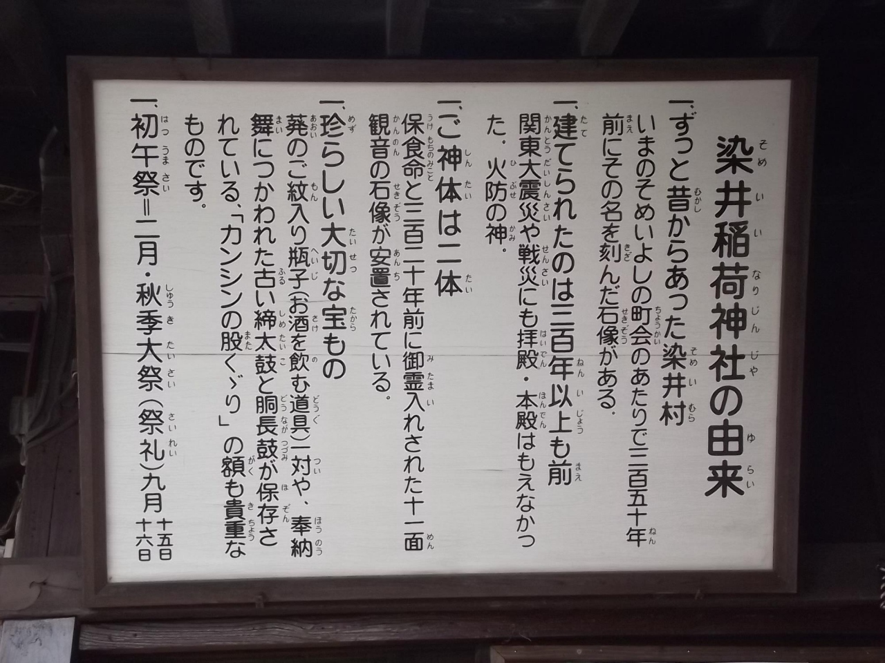 拝殿の左上に 「染井稲荷神社の由来」 が掲げられており、簡潔で非常に解かり易いです。