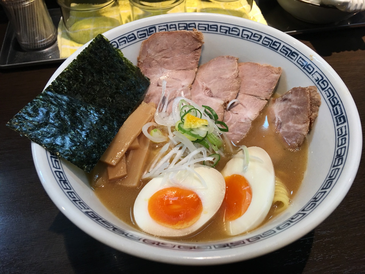 行列のできる有名なラーメン店で、ランチを食べに向かったところすでに5人ほど外に待っていました。チャーシュー面をいただきました。スープは魚介と動物系のもので、臭みも画組もなく、中太麺とよく合いました。チャーシューも食べごたえがあり、行列のできるわけがわかった気がしました。素直に美味しかったです。
