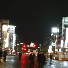 姫路駅を降りて北側に出ると目の前の50mほどの広い通りが大手前通りです。真正面に国宝姫路城がはっきり見えました。雨の降る夜10時前でしたが、ライトアップされ、とても綺麗でした。日本一美しい通りと言っても過言ではないかと思います。