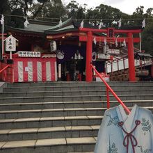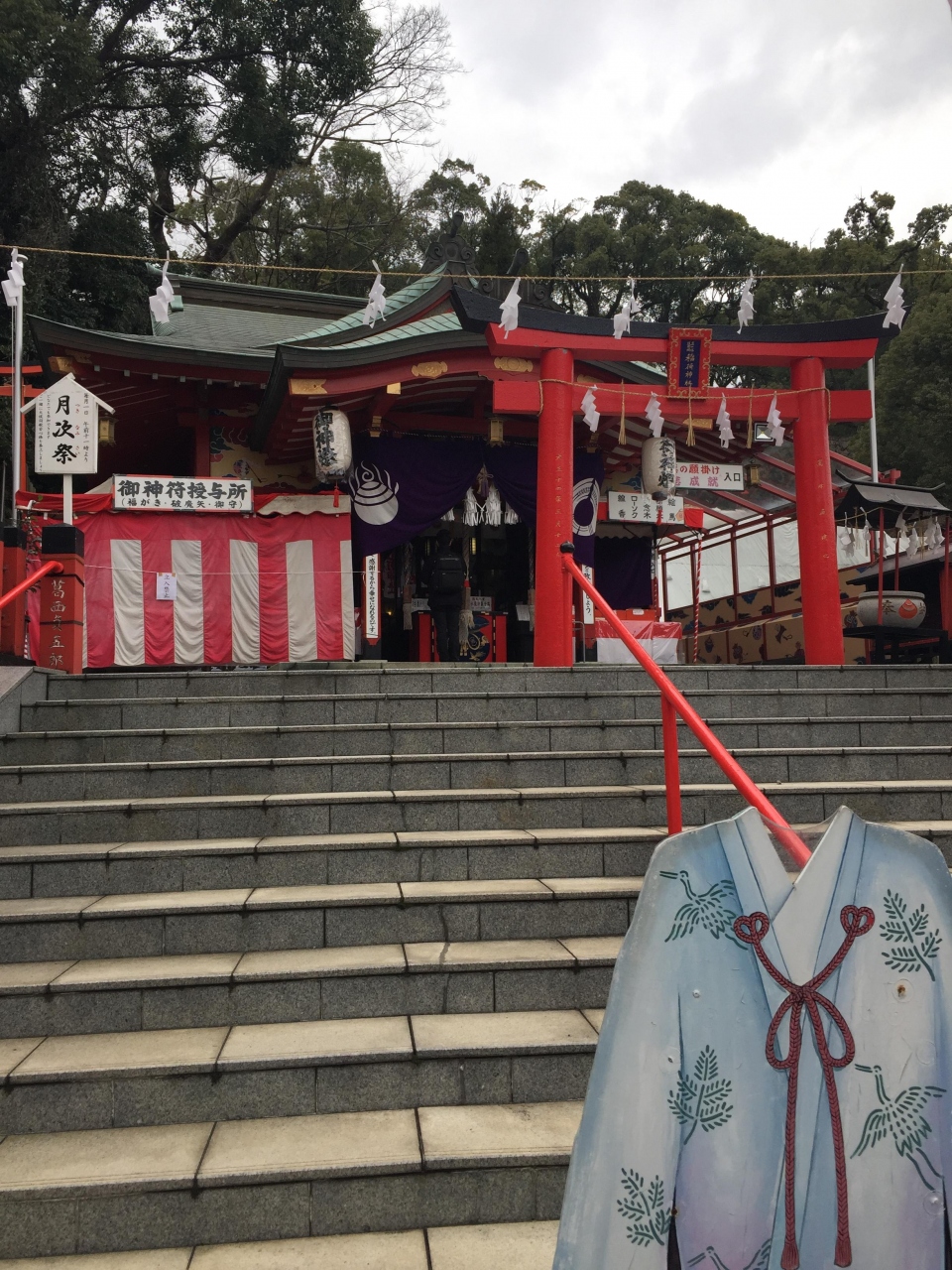 熊本城を見るためにたまたま寄った神社です。境内の真ん中には輪のようなものがあり作法にのっとってくぐると良いそうです。作法はその輪の横に書かれています。この神社はあまり地震の影響を受けておらず参拝することが出来ました。