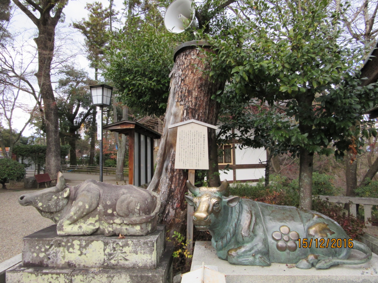 阪急長岡天神駅から徒歩7分程度。学問の神【菅原道真】を祀る神社。入口に大きな池が広がり長い水上橋が見事であった。中には日本庭園もあり、牛の石像も見応えあった。