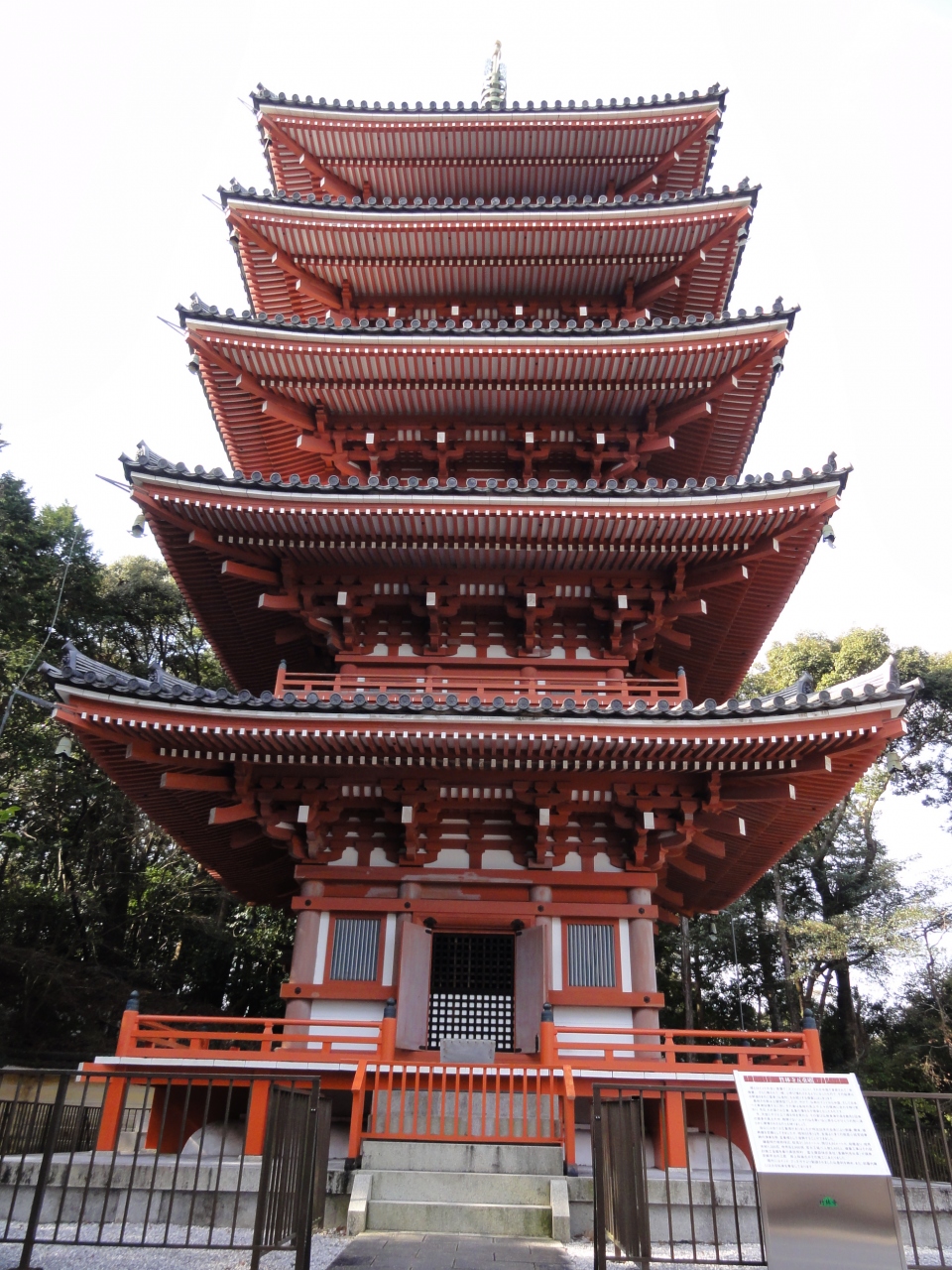 四国霊場第31番の竹林寺にある塔です。歴史あるお寺の割には新しい五重塔です。が昔は三重塔で、明治時代に台風で倒壊、その後再建を願って全国からの般若心経写経の奉納で浄財を得て、昭和55年にやっと再建出来たそうです。鎌倉時代初期の様式、外観のみで中の大日如来は見えませんがきれいな塔で思わず一枚撮りたくなります。
