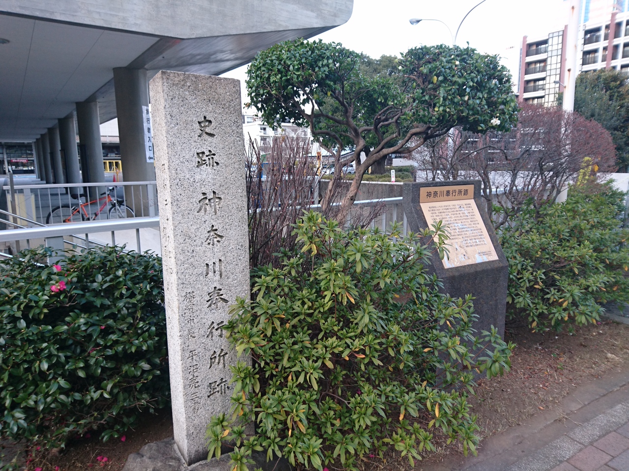 神奈川奉行所跡は、桜木町駅から、少し横浜駅方面にある、紅葉坂の上にあります。