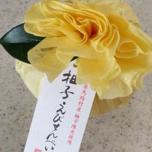 高知県馬路村産の柚子陳皮を使った『柚子えびせんべい』のビジュアルと試食で美味しかったのでお土産にしました。