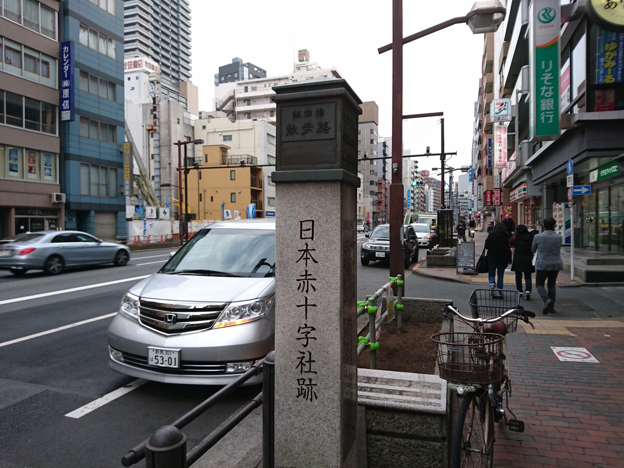 飯田橋駅東口から目白通りを九段方面に数百メートルほどいったところにこの碑はたっています。