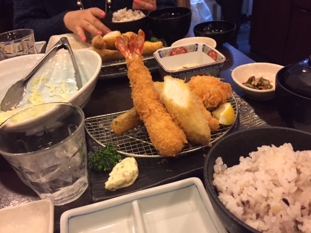 今回はランチで、ささみカツと海老、ホタテ貝柱がトリプルセットになったものをオーダー。