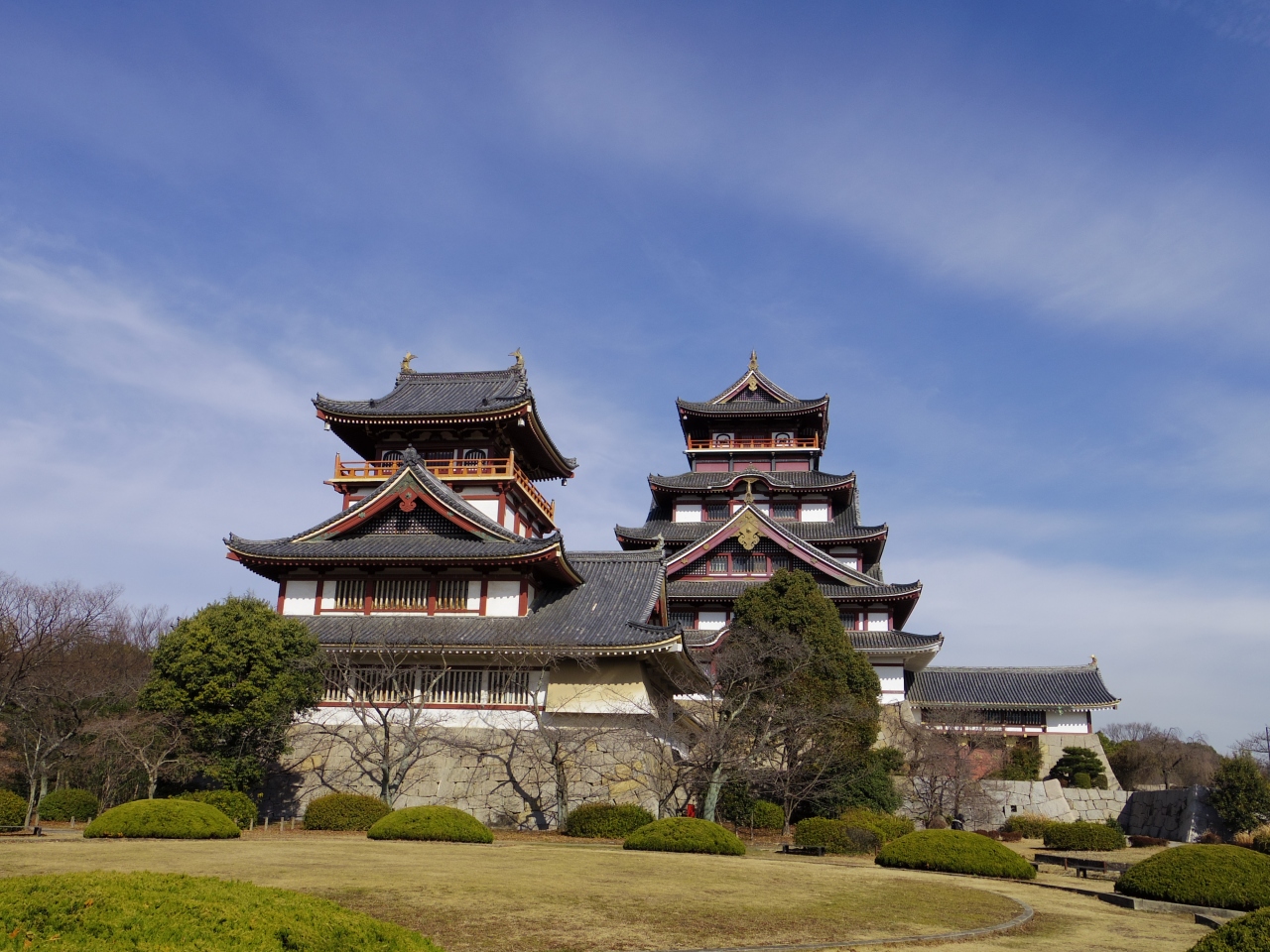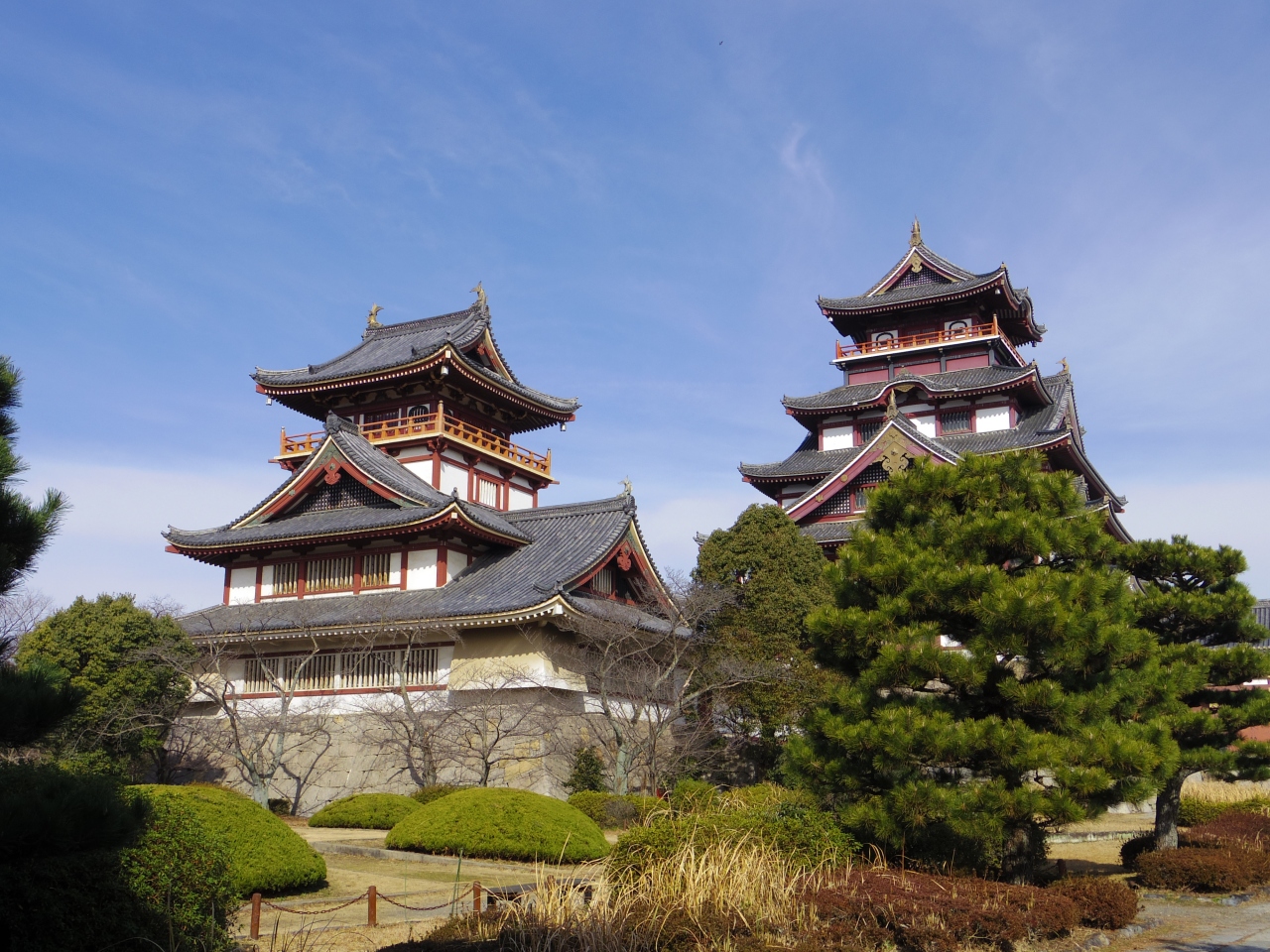 豊臣秀吉ゆかりの伏見城ですが、現在立っている天守と小天守は1964年に「伏見桃山城キャッスルランド」という遊園地が建設された時に造られたそうです。