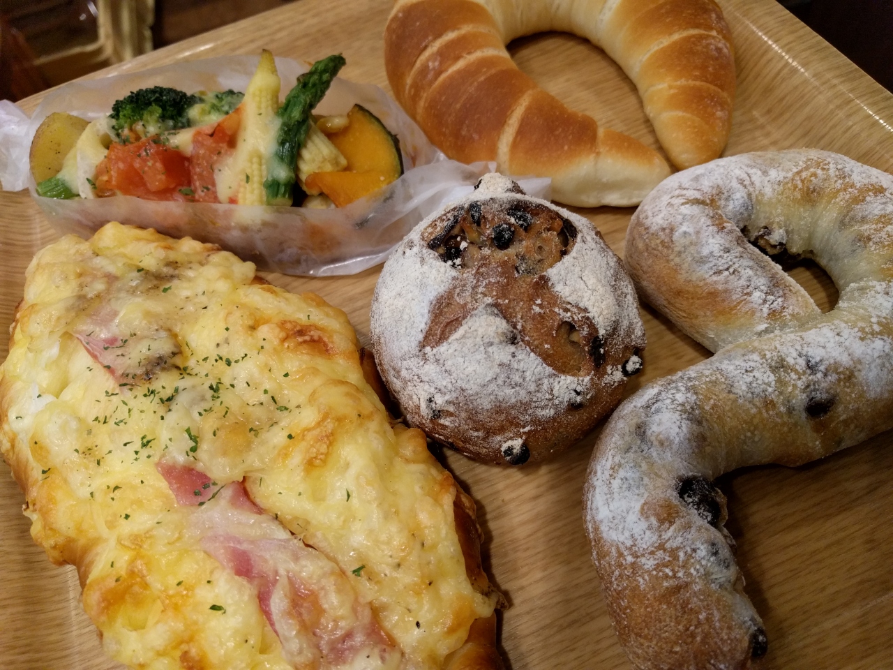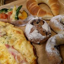 店内には焼きたてパンがずらりと並べられて、良い香りが漂ってましたね。