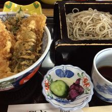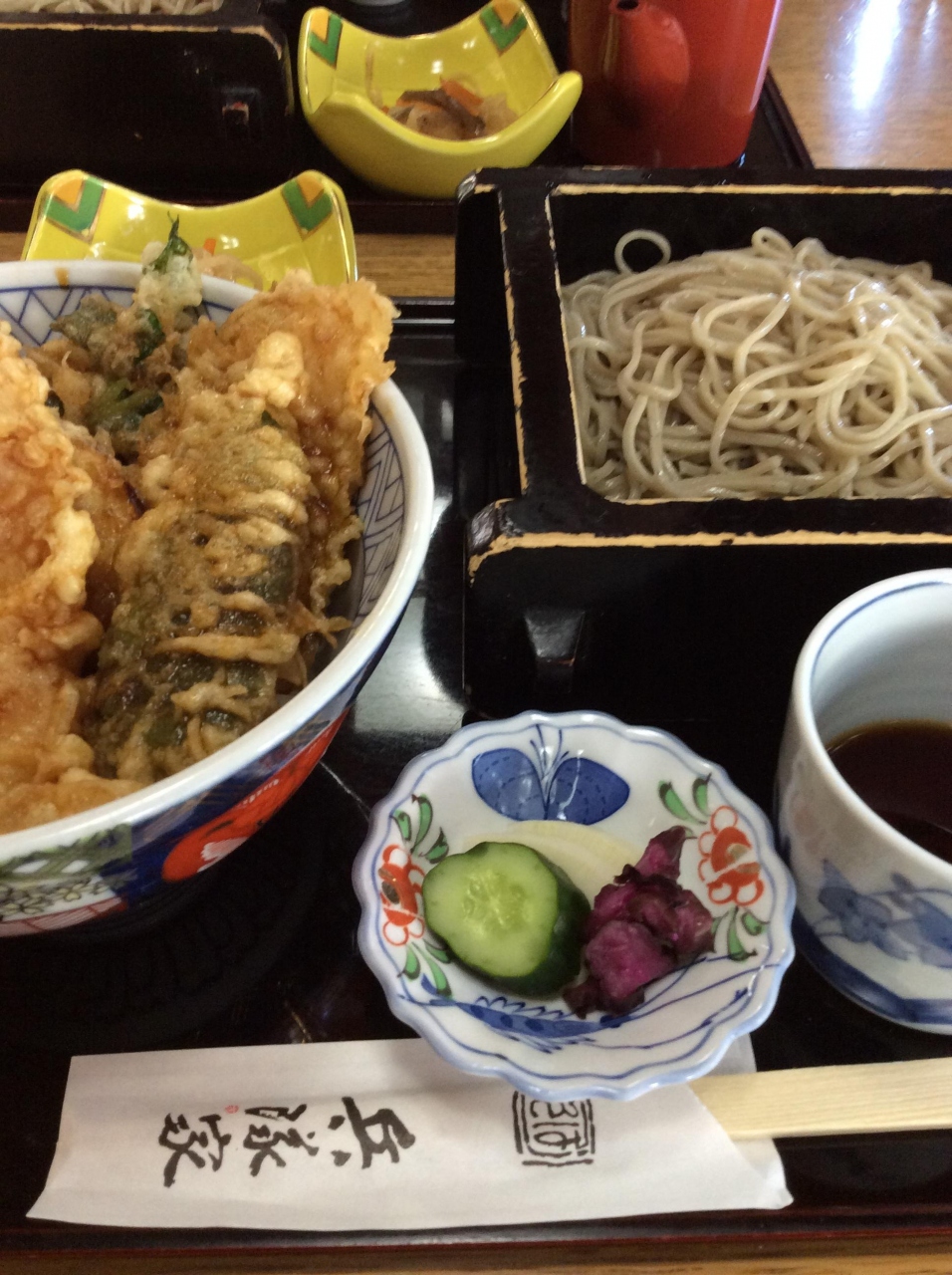 店内は意外と広く、お客さんもいっぱい。ランチの天丼セットを頂いた。天丼のつゆの色から味が濃そうに感じたがそのようなことはなく、思いのほか美味しく頂いた。お蕎麦は特記するほどの印象はなかったが天ぷらの種類も多くコスパ悪くないと思った。
