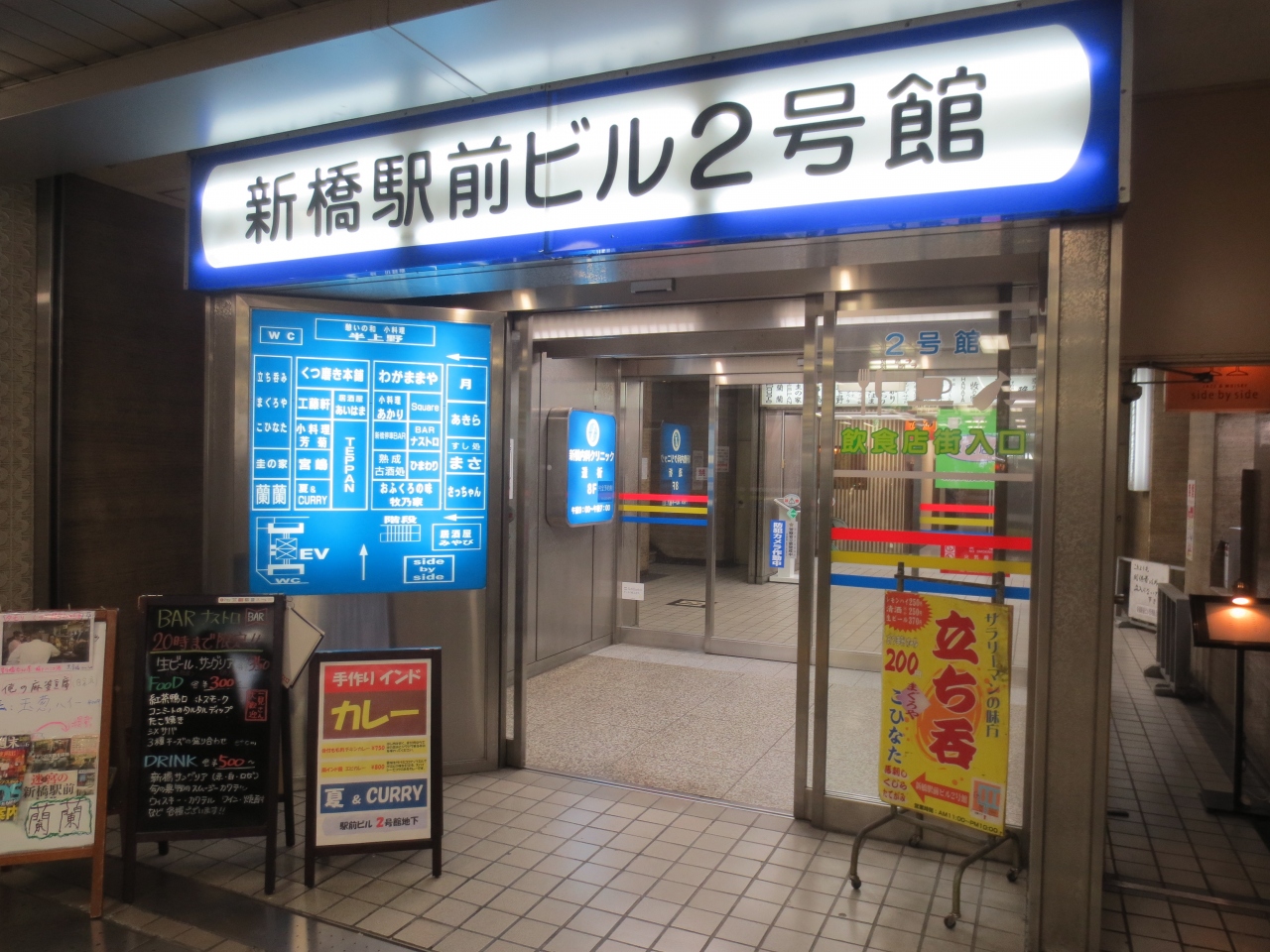 昭和レトロな新橋駅前ビルです。この日はその2号館を訪れました。この2号館、ビルの地下にして、完全に路地裏です。入ってみると、一杯飲み屋というかなんというか、小さなお店が点在しています。お気に入りのお店を見つけて、常連として訪れたいところです。