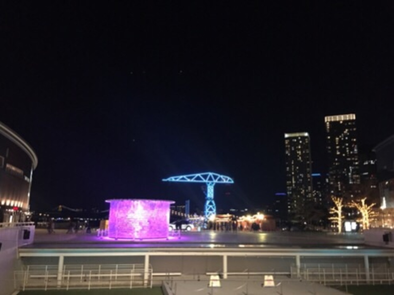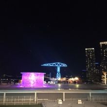 ららぽーと豊洲の海側にある船の積み下ろしのためのクレーンですが、いろんな色にライトアップされており、このように見るとドックとは言え、かなりおしゃれなオブジェのようです。