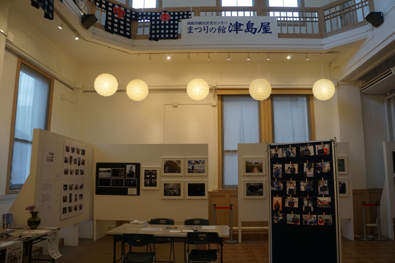 津島市観光交流センターは、津島駅から津島神社に向かう途中。ちょうど、中間くらいの場所です。昭和初期に建てられた銀行を利用した施設で、中に入ると天井の高い悠々とした空間が現れます。津島神社の天王祭の屋台の展示などもありました。ポスターでは提灯をいくつも備えた美しさが印象的ですが、大きさもかなりある。展示物は限られますが、祭りがちょこっと実感できると思います。