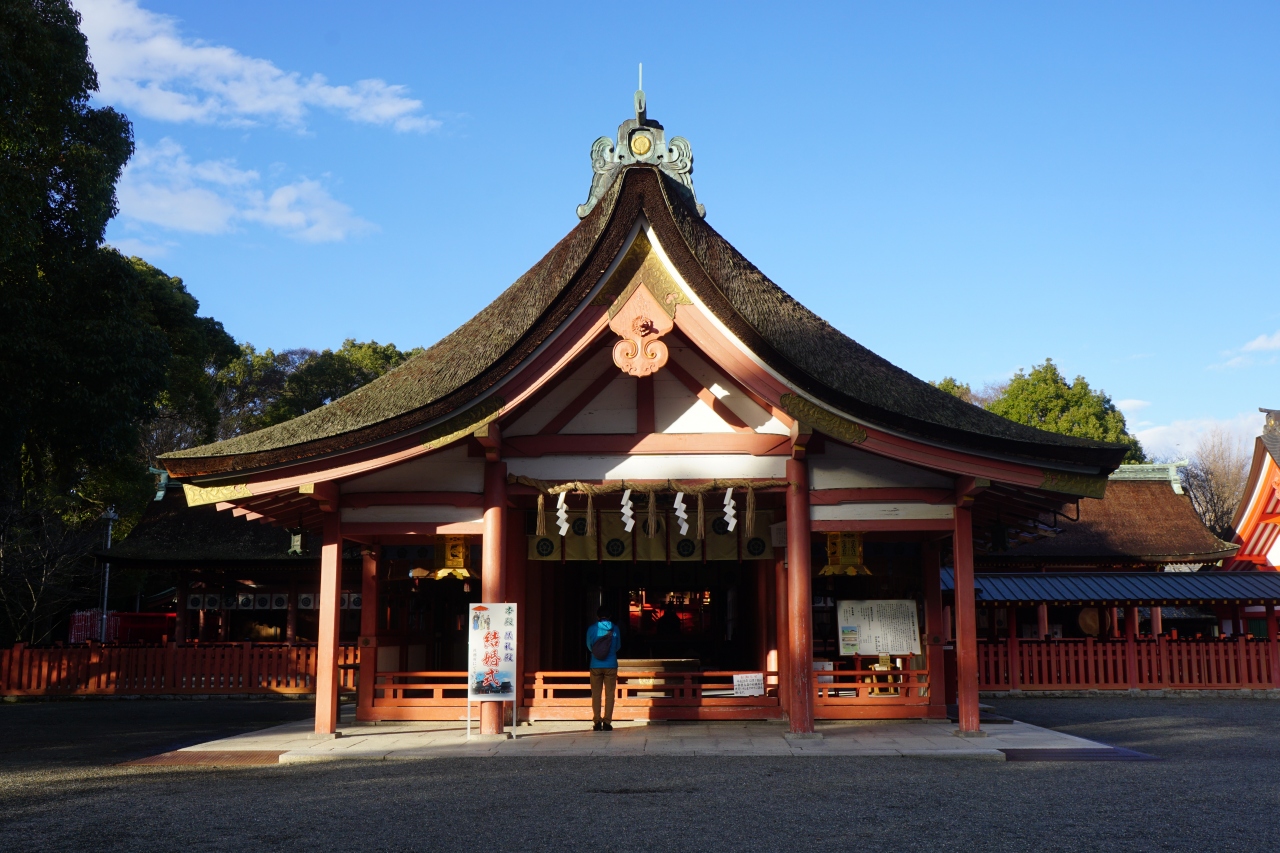 津島神社は、東海地方を中心に全国約3千社ある津島神社、天王社の総本社。楼門から本殿はすべて檜皮葺で、優雅な曲線を描いています。