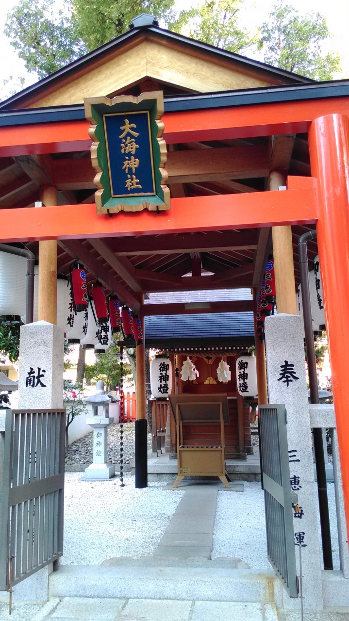生田神社をお参りしていて、境内に大海神社をみつけました。交通安全や海運安全のご利益があるそうです。神戸の街は古くから海運業が盛んで、街のすぐ近くに港があり、神戸らしい神社と言えそうです。夏には音楽やダンスのフェスティバルがあるそうで、国際的なお祭りのようです。