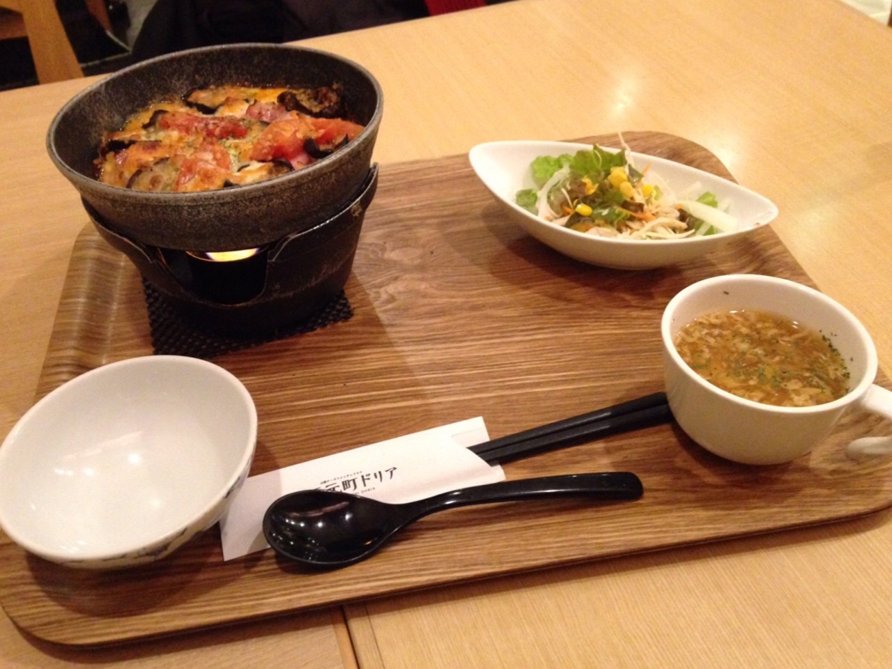 ハンバーガーとかもあったようですが定番のドリアからナスとベーコンの何とかセットとしました。