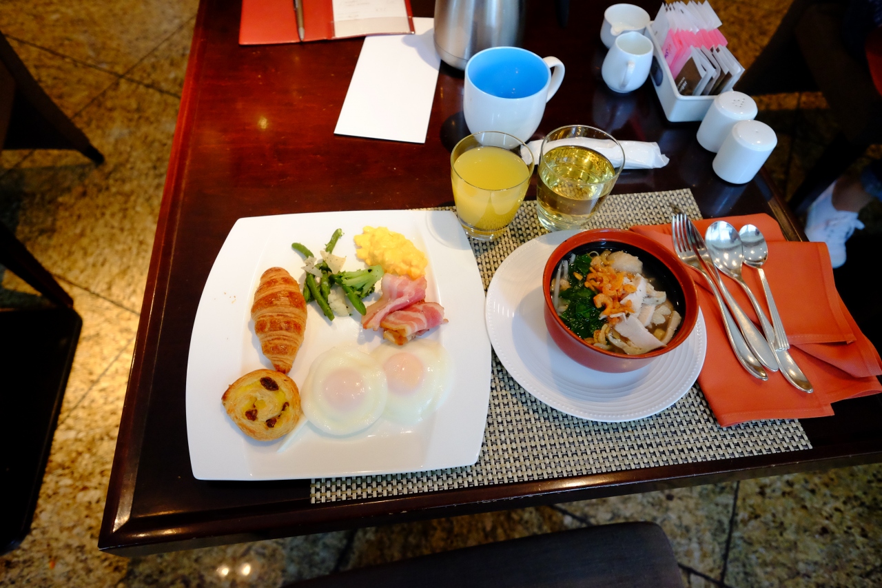朝食会場がここでした。シェフが目の前で具がたっぷりのうどんを作ってくれるサービスがあり、朝からあつあつのうどんを食べられたのはうれしかったです。メニューも和洋とりどりで、質量とも十分満足できるものでした。