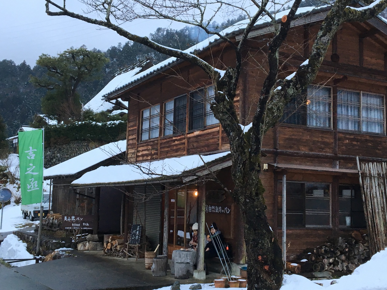 茅葺屋根の北集落の奥の方です。集落を入って右の方の突き当たりの高台に八幡神社があり、集落全体を見通すかと思って行って見ました。帰りに境内を下りたところにあるのが、このパン屋さんです。店前にイスもあるので、ちょっと休憩がてらのパンは美味しいです。看板をみると、何時も開店しているのではなさそうでした。