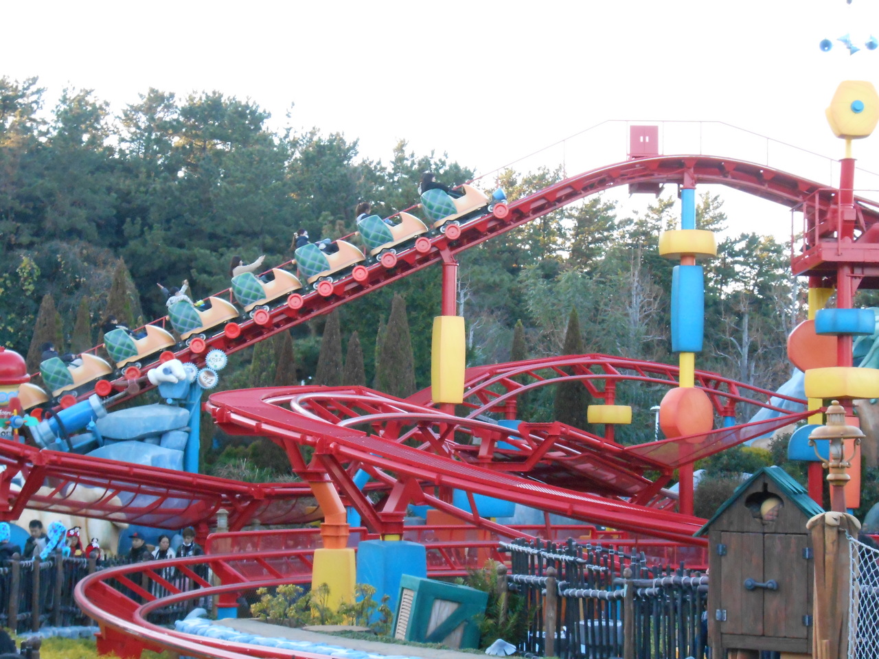 トゥーンタウンにあるジェットコースターです。小型のジェットコースターなので小さい子供でも乗車することができるのでファミリー向けのアトラクションです。30分程の待ち時間で乗れると言うこともあり、並んで乗りましたが、所要時間は、1分~2分とあっという間でしたが、そこそこスピードもあり、楽しかったです。