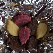 包み紙の中に、リーフ型の小さなチョコレートがいくつか入っていて、色々な味が楽しめていいです。値段もそんなに高くないので、手土産なんかにいいですよ♪