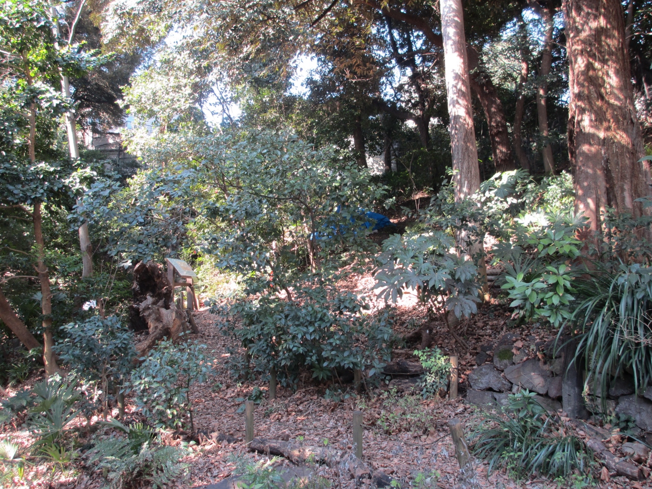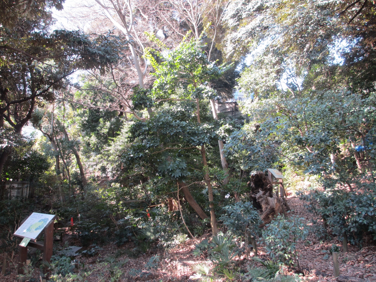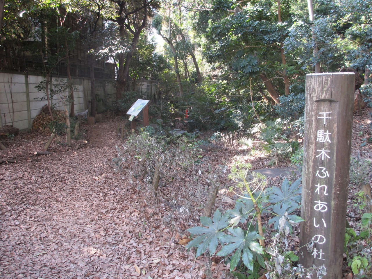 千駄木の住宅街にある崖に残る自然林です。向丘から訪れたので急な階段を降りました。千駄木方面から行くことをおすすめします。太田道灌子孫の屋敷がこの地域にあり、ふれあいの杜は所有者が文京区に一般公開を委託しました。急な崖に木々が茂り、自然のままに落ち葉が敷き詰められていて妙に静かで奥を歩く猫の足音にドキッとしました。倒木も立ち入り禁止にして自然のままの倒木更新を見せています。危険なことをしないように注意して都会の子供に自然の姿を見せるのに最適な場所です。今後も保存してほしいです。