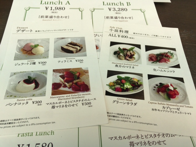 平日限定のパスタランチ、ランチメニューA(1,980円)、B(3,280円)から選びます。