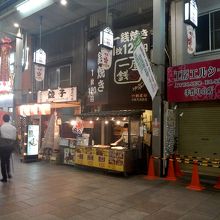 大阪市のアーケード街天神橋商店街に面するお好み焼の店。