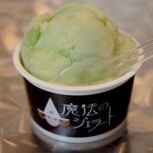 その名の通り、メロンソーダをそのままジェラートに加工したかの様で、口に中でシュワーッとする感じ。