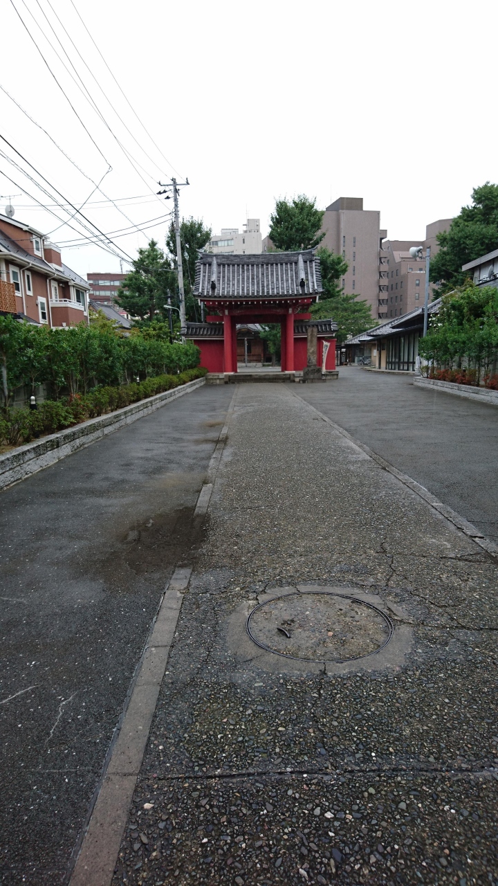 品川宿から続くこの辺りもお寺が多いですが、このお寺の山門の位置が変というか、通りからずっと奥まったところに山門がポツンと建っており、なんだか違和感を感じました。もしかしたら以前は道路から山門に至る部分ももっと広かったのかもしれません。三門自体は赤くてすごく目立っていました。