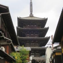 非常に京都らしい路地の中に塔が立ち絶好の景観は、二寧坂付近から見下ろすよりも、坂下から塔を見上げる姿が良いです。