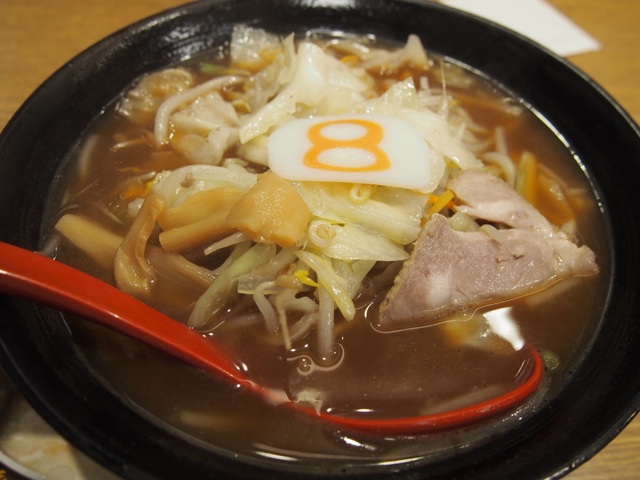 金沢駅ビルの百番街にある八番です。初めての利用ですが、八番は北陸地方ではよく見かけるラーメンチェーン店です。野菜ラーメンの醤油味を食べましたが、野菜の量が多く味などはちゃんぽん的な感じがしました。スープは塩、味噌などがあるようなので、次回はそれらを試してみたいです。