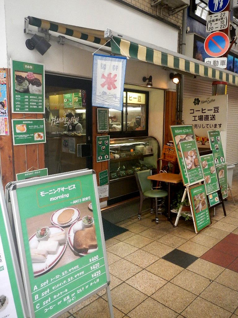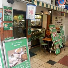 大阪市のアーケード街天神橋商店街に面する半セルフのカフェ。