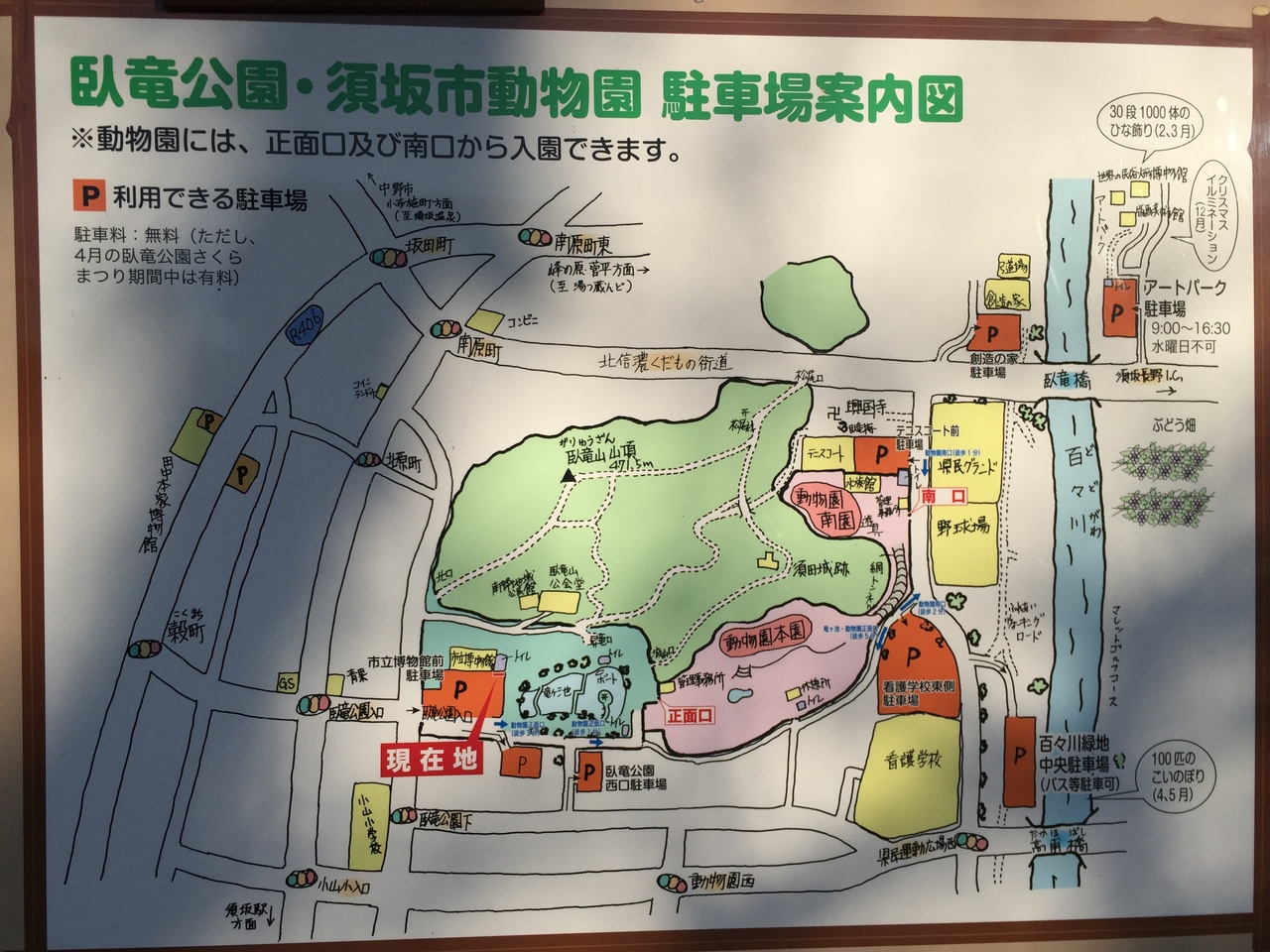 須坂駅からバスに20分くらい乗り、バス停から徒歩で5分くらいです。遠くからでも臥竜山が見えるので、迷いませんでした。