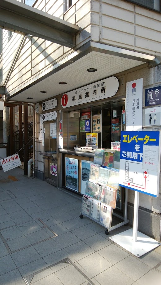 千光寺ロープウェイの山麓駅の機能と観光案内所の機能が両方備わった施設です。観光案内所と記されたサイン看板が掲げられていますが、一見すると観光案内所というよりはロープウェイのチケット売り場という雰囲気です。実際にも特に建物の室内空間まで利用した観光案内所ではなく、観光案内カウンターというか窓口という感じです。窓口のわきには尾道の観光施設のパンフレットや観光ガイド、観光マップなどがあって、尾道観光のスタートに立ち寄って、もらうと良いと思います。