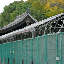 境内では、ちょうど有料拝観地区のお庭に面していますが、不開門と言われているぐらいなので、近くまでは行くことができないので、印象が薄い門でした。また、外側から見ても、現在、塀とともに工事中なのかよく見えませんでした。