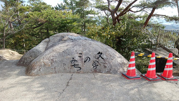 千光寺公園と千光寺の間の山道のような散策路に碑が点在しており、散策路の途中には碑とともに瀬戸内海の風光明媚な景色が見渡せます。時代はかなりばらつきがありますが著名な作者の文学碑がたくさんあります。この散策路はかなりきつい感じで、小さな子供や足腰に自身のない方には歩くのは難しいかもしれません。ここに設置されている碑についても、石の姿や材質、書体、大きさなど千差万別、多種多様です。千光寺山の頂上から、千光寺、猫の細道とつながるルートは、鉄板の散策ルートです。