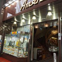 お店を入ってすぐのところに下がっているシャンデリア、カーブの効いた階段がとても印象的です。(二階はやっていませんでした)
